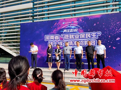 本报讯(首席记者姜德兴)郑州报道:为认真落实中央和省委省政府关于“六稳”“六保”重要精神,做好“稳就业,保民生”工作,重点解决高校毕业生和农民工的就业难题,8月29日上午,由河南省人力资源和社会保障厅、河南广播电视台指导支持,东方今报联合省人力资源和社会保障厅就业促进局、郑州市人力资源和社会保障局主办,郑州市职业介绍中心、老夏就业工作室等联合组织的“勇往职前”——河南郑州“稳就业保民生”线上线下精准招聘会在中国•郑州人力资源市场盛大开幕。河南省人力资源和社会保障厅就业促进局副局长卢宇,东方今报社总编辑赵瑞莹,郑州市人力资源和社会保障局党组成员、三级调研员康中超,郑州市职业介绍中心主任何建伟,东方今报社内容运营中心总监夏友胜、贝壳找房中原区域市场中心总监刘燕、九博人才网总经理于讯出席了启动仪式。