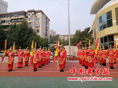 本报讯(首席记者姜德兴 通讯员马丽 郭俊霞)郑州报道:9月14日上午,郑州市管城区外国语小学四年级14班举行了“铭记历史 吾辈自强”国旗下班级展示教育活动。