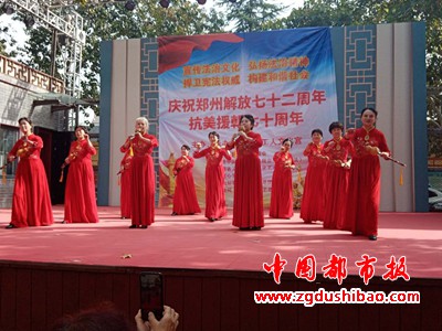本报讯(记者陈发青  通讯员田聚成  王艳丽)报道:金秋十月,秋高气爽,阳光明媚。在河南省工人文化宫五一公园爱心大舞台举行精彩文艺演出,10月22日是郑州解放72周年纪念日,又是抗美援朝出国作胜利70周年!向解放郑州老战士致敬!向抗美援朝的英雄们致敬!我们今天的生活来之不易,我们要倍加珍惜!不忘初心,砥砺前行!