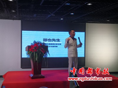 鑫基元首集团酒店物业总裁惠东在致辞中,就酒店物业板块、餐饮板块、医养结合板块、养生酒店产销板块,以及如何将养生理念植入酒店物业与管理做了专题讲解。