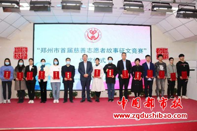 本报讯(首席记者姜德兴)郑州报道: 志愿服务是社会文明进步的重要标志,是广大志愿者奉献爱心的重要渠道,为更大范围传播慈善志愿者的先进事迹,在全社会蔚成风气,11月4日,郑州慈善总会在“新时代郑州慈善文明实践中心”举行“郑州市首届慈善志愿者故事征文竞赛”颁奖仪式。郑州慈善总会会长姚待献、副会长王万民、郑州市民政局副局长李淑萍、金水区民政局局长刘楠等领导和嘉宾参加活动。活动共表彰24位征文竞赛获奖作者,并发布《志愿者颂歌》获奖作品集。