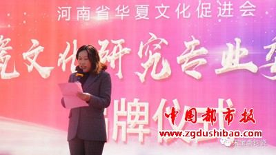 河南省华夏文化促进会陶瓷文化研究专委会会长,宋宝斋实业集团董事冯莎女士为次揭牌仪式致辞。