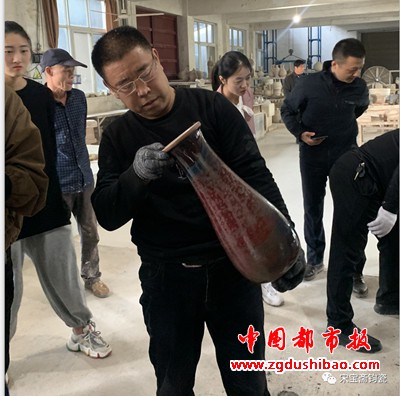 礼毕,大家来到展厅,在工作人员的讲解下,一起感悟钧瓷的神奇诡秘,领略钧瓷文化的魅力。
