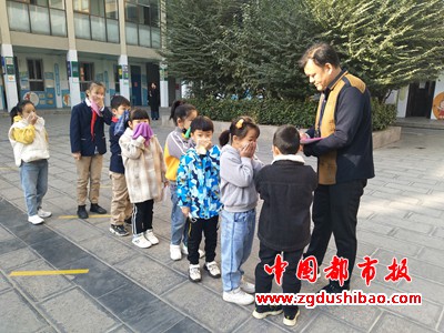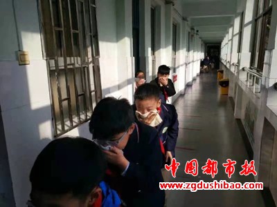 11月9日上午9:35,全体师生听到火警警报后,按照学校制订的紧急疏散路线图,“掩住口鼻、弯腰前行、小跑”,快速、有序地撤离;站队、清点人数、汇报情况,整个过程用时仅2分32秒。