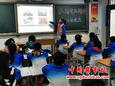当天下午,该校邀请上街区人民检察院第三检察部未成年人司法保护中心检察官蔡瑞杰为少先队员上了一堂生动的宪法教育课。