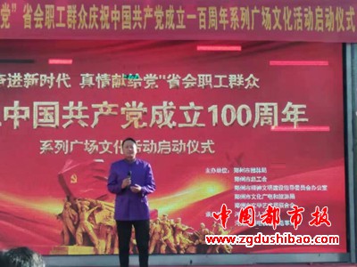 本报讯(记者袁宏太 通讯员田聚成)郑州报道:为庆祝中国共产党成立一百周年,充分展现省会职工群众热爱党、歌颂党的真挚情感和奋进新时代的精神风貌,12月30日上午,由郑州市园林局、郑州市总工会、郑州市精神文明建设指导委员会办公室、郑州市文化广电和旅游局、郑州市文学艺术界联合会共同主办,河南省工人文化宫、河南省广播电视台生活事业部承办的“奋进新时代 真情献给党”省会职工群众庆祝中国共产党成立一百周年系列广场文化活动启动仪式在省工人文化宫举行。