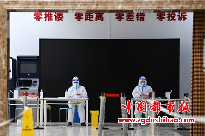 1月23日,医务人员在哈尔滨市抚顺社区核酸检测点值守。