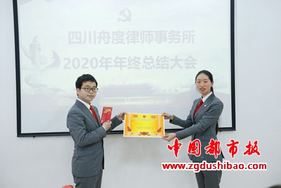 本报讯(记者卫智健)四川报道:本次会议由管委会主任程德谦主持,会议分为五项议程,首先由事务所主任周婧总结了2020年事务所全年的工作情况及党建工作,从特色工作亮点、业务工作、党建工作、队伍建设,不足以及下一步打算六个方面进行全面总结。周婧主任指出,2020年是贯彻习近平总书记法治思想,加强治理体系和治理能力现代化,打赢疫情防控狙击战不平凡的一年,也是四川舟度律师事务所不断壮大的一年。在这一年里,事务所取得了不少的成绩,不仅率先与财税公司开展合作,同时还积极发挥律师公共法律服务职能,率先开展“法律夜市”活动,持续服务夜间经济,助力文明城市建设。该活动被两次入选“学习强国”平台,后又登上《中国改革报》,并入选全市党建引领两新组织参与基层治理“十佳案例”。回顾2020年的工作,我所以优质的法律服务质量求信誉,以良好的社会信誉促发展,获得了社会各界的广泛好评。在明年的工作中,我所将积极探索,创新工作方法,不断加强舟度品牌建设,创作舟度之歌,让舟度品牌深入人心,积极融入成渝双城经济圈建设。