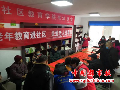 本报讯(首席记者姜德兴)郑州报道:春节临近,为让社区老人把浓浓的年味带回家,过一个欢乐祥和喜庆的春节,2021年1月30日,航空港区社区学院、老年社区教育组织开展的“关爱老人进社区,义写春联送万家”活动在滨河办事处金源社区展开,郑州慈善总会“暖航公益”慈善基金,暖航社会工作服务中心承办,邀请手机产业园、新郑农商银行,金源社区党支部书法家义写春联。