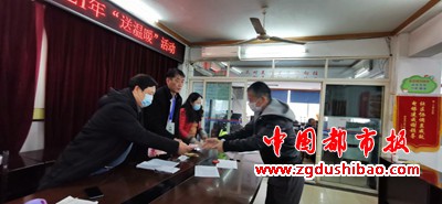 本报讯(记者卫智健)四川报道:辞岁迎新同欢乐,欢庆时刻送祝福,为确保辖区群众过上一个欢乐祥和的大年,下渡口社区工会在宜宾市叙州区南岸街道联系组指导下,社区工会集中慰问了贫困党员、群众,一线疫情防控人员,计生特扶家庭人员,残疾人员,低保人员等共计70人,送去了党和政府的关心关爱。