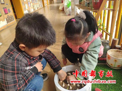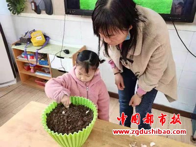 孩子们早已迫不及待,准备好小种子和工具准备大干一场。为了使孩子们更好的种下希望,护好植物,教师们从怎样挖土、埋种、到怎样正确浇水都耐心引导。