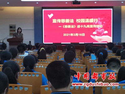 本报讯(首席记者姜德兴)郑州报道:3月16日下午,适逢《中华人民共和国慈善法》颁布五周年及第十五个“世界社工日”,为进一步弘扬公益慈善精神,传播慈善理念,营造人人关心慈善、人人参与慈善的良好氛围,郑州市民政局、郑州慈善总会联合郑州市第十九高级中学开展以“宣传慈善法,校园温暖行”为主题的《慈善法》进校园公益慈善讲堂,各年级选派学生代表聆听了课堂。