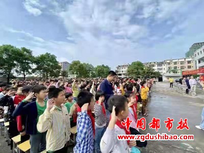 活动第一项,升国旗、奏国歌。这是河洲镇中心小学每次开大会、举行活动必走程序。与会领导、师生一个个恭敬地向国旗敬礼,并齐唱国歌。一种庄严神圣的爱国情愫,顿时弥漫在整个校园里。