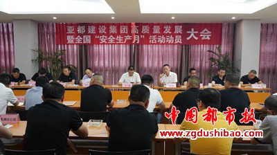 (记者李方)浙江报道:2021年6月7日下午,亚都建设集团召开高质量发展暨2021年度“安全生产月”活动动员大会,亚都建筑公司、钢业公司中层以上负责人、部分项目经理共50多人参加会议。会议由集团总经理章志刚主持。集团副总经理劳月清布置动员“安全生产月”活动,集团总经理章志刚就高质量发展全面提升管理水平提出具体要求,集团董事长张元锋总结讲话。