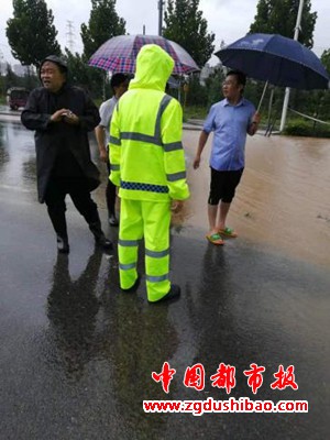7月19日,郑州荥阳健康园区管委会副主任李为民收到红色汛情预警后,立即对园区防汛工作再动员、再部署,要求全面排查园区排水系统,全力以赴应对这次强降雨,并身先士卒,到京城路高铁路口等积水点实地查看积水突出问题,确保群众身命财产安全,为园区防汛工作吹响了集结号,动员每一位同志要站在防汛工作的最前沿。经过一天的地毯式拉网排查,园区共排查出积水点15处,塌陷一处。“对于排查出的每一处险情,能现场处理的立即着手解决,不能立即解决的第一时间设置警戒标识,做到专人值守,守岗尽责,要制定最优解决方案,最大限度减少群众财产损失和工程损失!”李为民副主任现场叮嘱险情一线值班的同志。