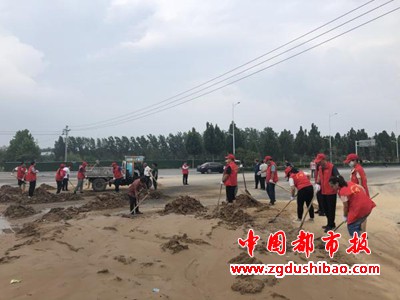 总工办王志军的老家汜水也是重灾区,他的父亲在镇上居住,他知道自己的父亲身处危险当中,但他更清楚自己肩上的责任,他通过电话与父亲简短沟通,得知父亲被当地政府转移到安全的地方后,便又投入到防讯一线值班当中。在志愿者群中,大家发现公休在家的军队转业干部郭云东同志忙碌的身影,主动参与到社区的防汛抢险当中,展示了过硬的个人素质。
