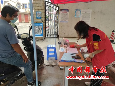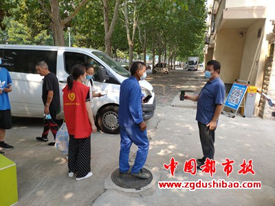 (记者李国杰 通讯员马红丽)“叔叔、阿姨,请停一下扫码、测体温”济办下沉社区工作人员李义急速追上回家的居民,为他们测体温、帮他们扫码,不能扫码的做好登记。李义是济源路街道办事处下沉到社区的工作人员,负责供电局家属院,这个楼院有七栋楼,100多户居民,老年人居多,他们以为上了年纪,出入小区以直出直进。李义在疫情防控工作当班中,尽心尽力的劝阻老年居民们扫码、测体温、登记。