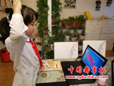 全校师生首先进行了一次特殊的升旗仪式,学生利用手机、电脑等方式参加了这场简单又庄严的升旗仪式。