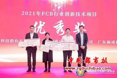 SPCA会长姜雪飞为获得2021年PCB行业创新技术项目优秀奖的企业代表颁奖