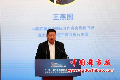 12月16日,2021“讲好中国故事”创意传播大赛“一带一路”主题赛启动仪式暨园区经贸合作发展高端对话会在成都青白江区举行,图为中国民营经济国际合作商会党委书记、亚太贸易协定工商会执行主席王燕国。摄影:白桂斌