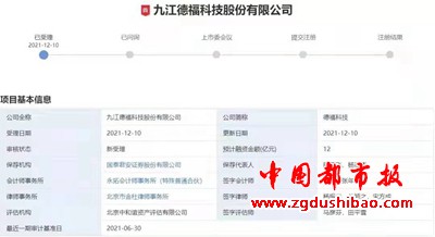 本报讯(记者李方  通讯员HNPCA) (一)12月10日,深交所新受理了九江德福科技股份有限公司(以下简称"德福科技")创业板IPO申请。