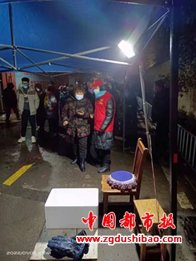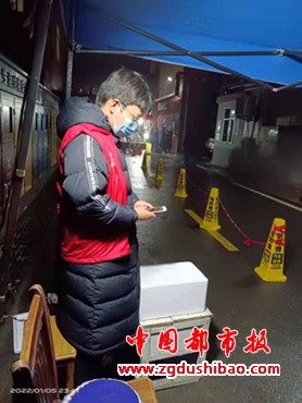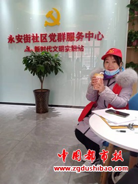 永安街社区党群服务中心的工作人员为志愿者预备热奶茶,热心商户为志愿者送来热腾腾的爱心米粥,居民提醒志愿者,天冷注意保暖防护,志愿者们拿着暖暖的奶茶心里一阵阵感动。
