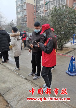 志愿者们没有丝毫的懈怠,认认真真、兢兢业业的进行劝返、扫码、测温和向群众解释等工作。
