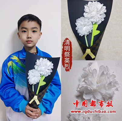 英雄赞歌永不灭,朵朵白花寄哀思。一二年级的同学,通过观看英雄影视剧了解英雄人物,为了更好地表达自己对革命先烈的怀念和追思之情,他们还制作了“纸菊花”,向革命先烈鞠躬献花。