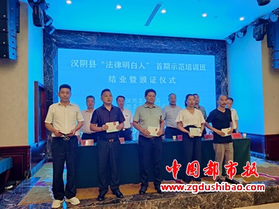 本报讯【记者袁宏太 通讯员尹中纲 史家治 王宝君】陕西报道:7月29日,陕西汉阴县2022年度乡村“法律明白人”轮训暨首期示范培训班圆满结束,同时举行“法律明白人”首期示范培训班结业暨颁证仪式,为考核合格的100名乡村“法律明白人”颁发了证书和徽章。