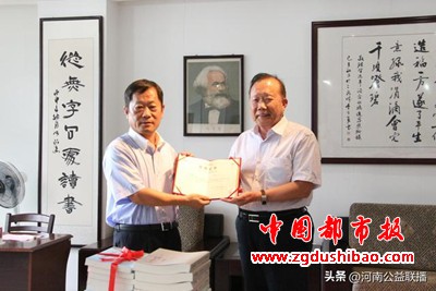 本报讯(首席记者姜德兴)郑州报道:8月9日下午,郑州诗词学会郑州老年诗词研究会会长姚待献向郑州工程技术学院捐赠图书仪式在英才校区明德楼会议室举行。学校党委书记周春辉,校长卢奎,纪委书记谢霜云,党委委员常锋、吕村出席捐赠仪式。