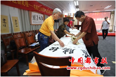 下午,喜迎二十大奋进新乾程书画名家笔会在乾程文化艺术研究院举办。书画艺术名家张天仁、张志升、连乾坤、王崭宇、李水明、刘汉珍、栗文海、朱鹤伦等现场挥毫泼墨,书赞中原,画展河南,为二十大献礼!