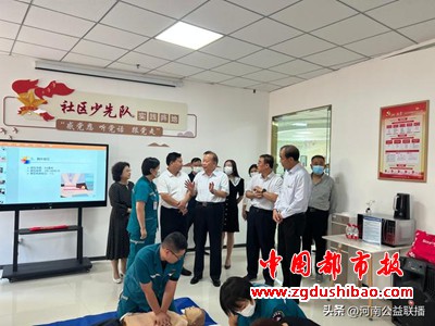 仪式结束后与会人员参观了平安街银杏健康驿站。活动现场郑州市中心医院为社区开展了丰富的项目活动,如义诊及免费疾病筛查、组织急危重症快速精准救治培训,对合作社区书记进行了项目宣讲及业务培训。
