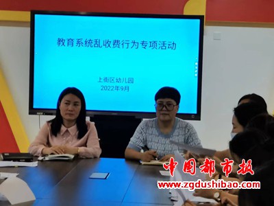 本报讯(记者李国杰  通讯员李邓超)郑州报道:为严格落实《河南省教育厅河南省发展和改革委员会河南省市场监督管理局关于开展全省教育系统乱收费行为专项排查工作的通知》(教财〔2022〕300号)文件精神,2022年9月19日,上街区幼儿园组织全体教师在会议室召开了乱收费行为排查治理工作会议。会议指出,规范治理教育乱收费工作,是推动教育事业持续、健康、协调发展的必然要求,是教育系统党风廉政建设的重要任务。