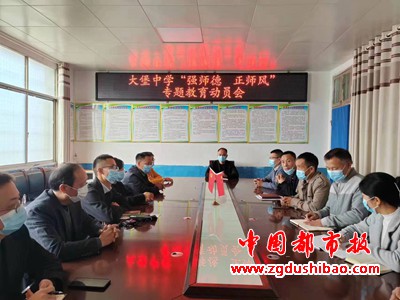 本报讯(记者袁宏太 通讯员唐辉 陈静)湖南报道:为进一步提升教师职业道德修养,规范教师从教行为,深入推进我校师德师风建设,2022年10月8日,常宁市大堡乡中心学校在教学楼四楼会议室召开“强师德,正师风”专题教育活动动员大会,大会由曹灵智校长主讲,书记彭卫华出席会议并讲话。