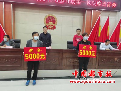 观摩现场会采取全镇19个选村民组、社区现场察看,村社区负责人5分钟简单介绍整治情况,考评打分组和各村负责人现场打分的办法进行。根据打分结果本轮观摩现场会评出蔡庄村一等奖1名;石岗村、朱洼村二等奖2名;军王村、连庄村、鸡山村三等奖3名;楼房湾村、李庄村、梁庄村、姬庄村4个村优秀奖4名;分别按获将等级给予10000元、5000元、3000元、2000元的现金奖励。对打分获得最后3名的村现场提出了通报批评和限期整改要求。