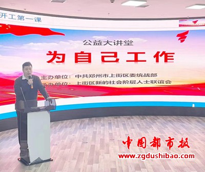 本报讯(记者袁宏太 通讯员田聚成 王长安 陈丽娜)郑州报道:开局就是奔跑,起步就是冲刺,时值各企业陆续开工之际,为帮助企业提高员工职业素养,促进企业快速发展,2月10日下午,由中共郑州市上街区委统战部主办、郑州市上街区新的社会阶层人士联谊会承办的:《开工第一课:为自己工作》助企公益大讲堂在中关村e谷会议中心开课了,本次公益课程专程邀请资深职业培训师、上街区新联会理事刘杰前来授课。政协副主席吕现州特邀为培训班致辞。
