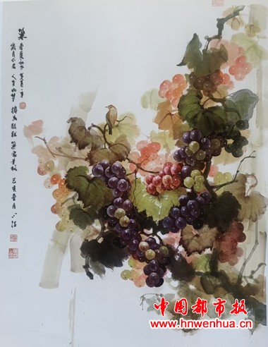 《流年染紫时,一藤一世界、一果一乾坤----论肖超“彩墨葡萄”的美学建构》