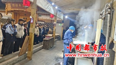 非遗工坊内热气氤氲,十八道制粉工艺逐一铺展。选薯、洗薯、磨浆、沉淀、漏粉、拔粉……每一步都承载着匠人的坚守。最令人惊叹的是非遗粉匠的“银丝之舞”:师傅手持漏勺,将白色粉浆化作缕缕银丝坠入沸水,在水花中翻滚成一根根晶莹的粉条,整套动作行云流水。“力道轻重、漏勺高低都得拿捏精准!”师傅一边演示一边讲解,同学们屏息凝神,不时发出阵阵赞叹。同学们跃跃欲拭,在非遗粉匠师傅的精心指导下,几位同学端起漏粉体验了一把。