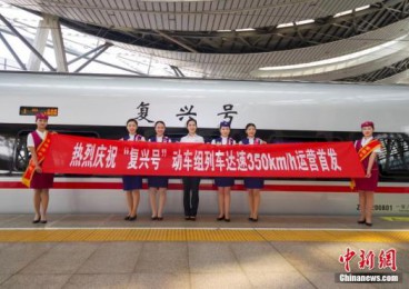 铁路局发布“复兴号”成绩单:京广高铁上座率100% 9月21日,G13次“复兴号”列车乘务组在北京南站站台合影。当日,中国铁路调整运行图,京沪高铁线路上开行的“复兴号”动车组增加至7对,全部按最高时速350公里运行,京沪之间全程运行时间缩短至4小时30分左右。中国已成为世界上高铁商业运营速度最高的国家。日期:2017-10-21 点击:159970