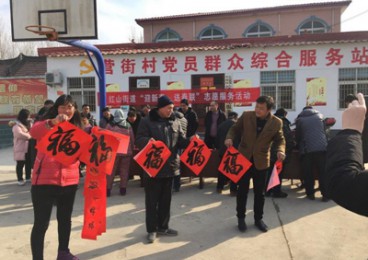 春联送村民,新年献祝福 国泰民安逢盛世,风调雨顺颂华年。多劳多得人人乐,丰产丰收岁岁甜。1月21日下午,河南省舞钢市产业集聚区管委会和红山街道志愿者们,特邀辖区书法爱好者,在营街村党群服务中心举办“迎新春、送春联”活动。日期:2019-01-21 点击:192345