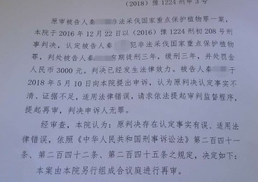 河南农民采三株兰草获刑提出申诉 法院认为原判有误决定再审本报讯(首席记者王瀚琳)据中国卫视网提供消息:河南卢氏县农民秦某在林坡上挖了 3株兰草,回家路上被当地森林公安查获。2016年12月,卢氏县法院认定秦某挖的兰草是蕙兰,属国家重点保护植物,判他犯非法采伐国家重点保护植物罪,且属情节严重,判处有期徒刑3年,缓刑3年,并处罚金3000元。日期:2018-05-25 点击:2847
