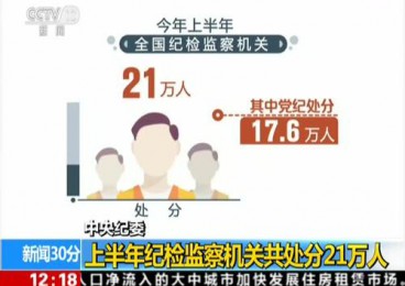 中央纪委通报 上半年纪检监察机关处分21万人 包括省部级干部38人