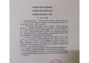 严 正 声 明根据中国都市报社中都字(2022)第513004号文件决定,王冰冰女士(身份证号:110102195810012342工作证号:49643(SO)-000020)已被免去我社国际新闻部副主任职务,我社为王冰冰女士出具的工作证同时作废,即日起王冰冰女士发生的任何业务与本社无关。日期:2022-07-13 点击:165135