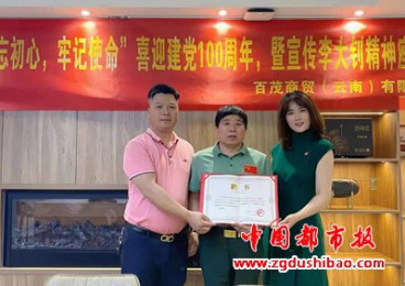 红色文化传承人高建国走进企业 助力传承李大钊精神 本报讯(记者卫智健)云南报道:2021年5月17日上午红色文化志愿者,红色文化传播大使,中国当代红色文化传承人物,红色文化形象大使,全国学雷锋先进个人,全国拥军爱民推广大使高建国参加红色文化走进云南“不忘初心,牢记使命”喜迎建党100年,暨宣传李大钊精神座谈会在百茂商贸(云南)有限公司举行。日期:2021-05-17 点击:176427