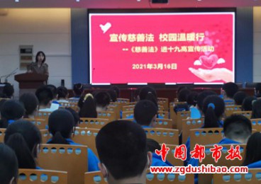 郑州公益慈善大讲堂系列活动----《慈善法》进校园 本报讯(首席记者姜德兴)郑州报道:3月16日下午,适逢《中华人民共和国慈善法》颁布五周年及第十五个“世界社工日”,为进一步弘扬公益慈善精神,传播慈善理念,营造人人关心慈善、人人参与慈善的良好氛围,郑州市民政局、郑州慈善总会联合郑州市第十九高级中学开展以“宣传慈善法,校园温暖行”为主题的《慈善法》进校园公益慈善讲堂,各年级选派学生代表聆听了课堂。日期:2021-03-17 点击:107889